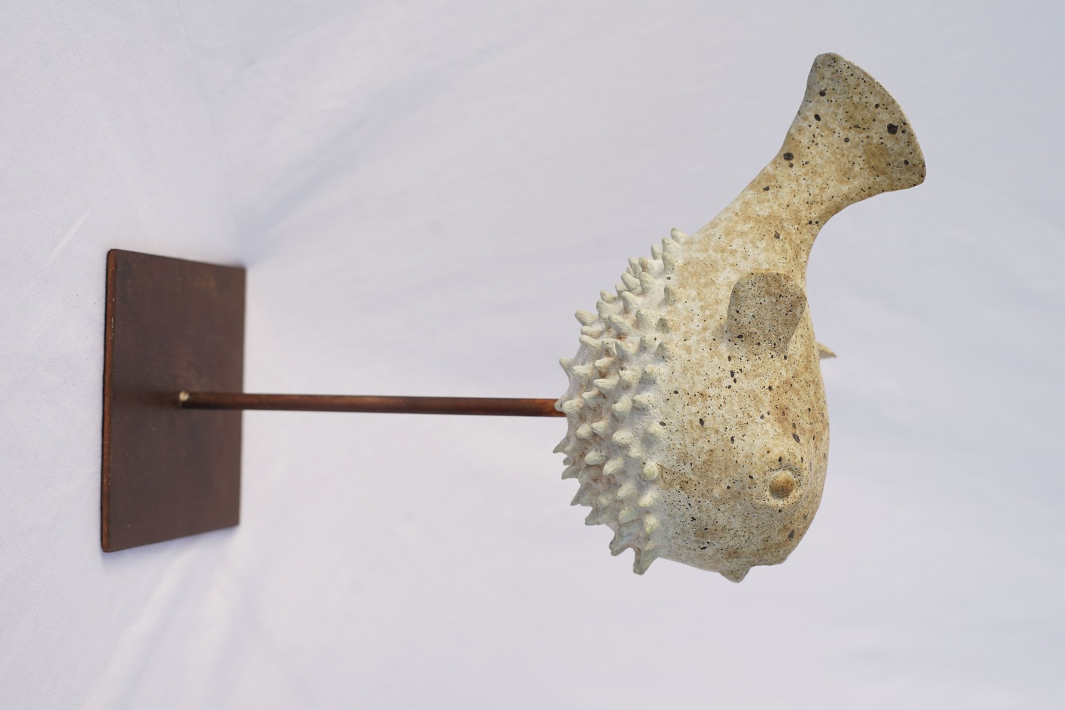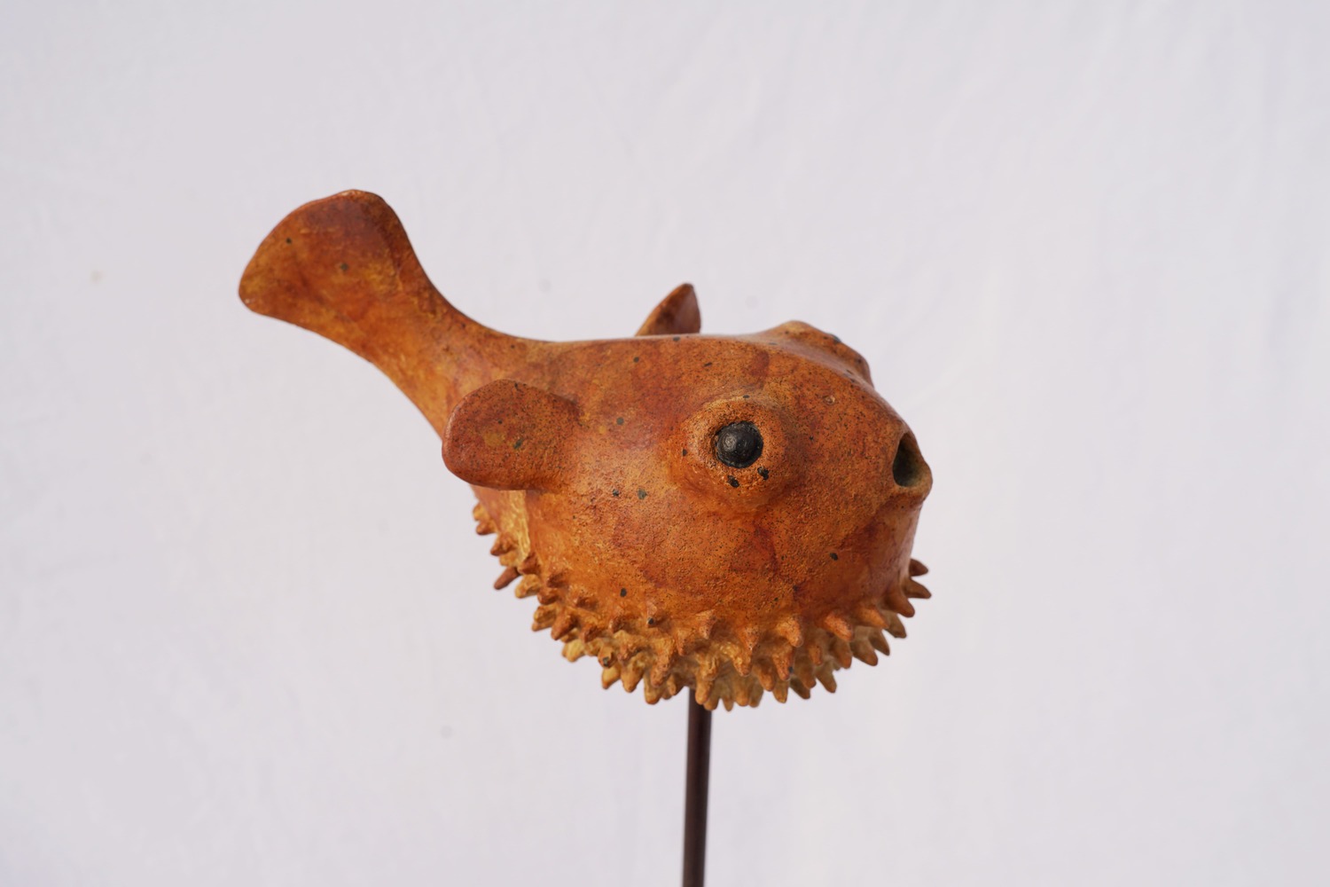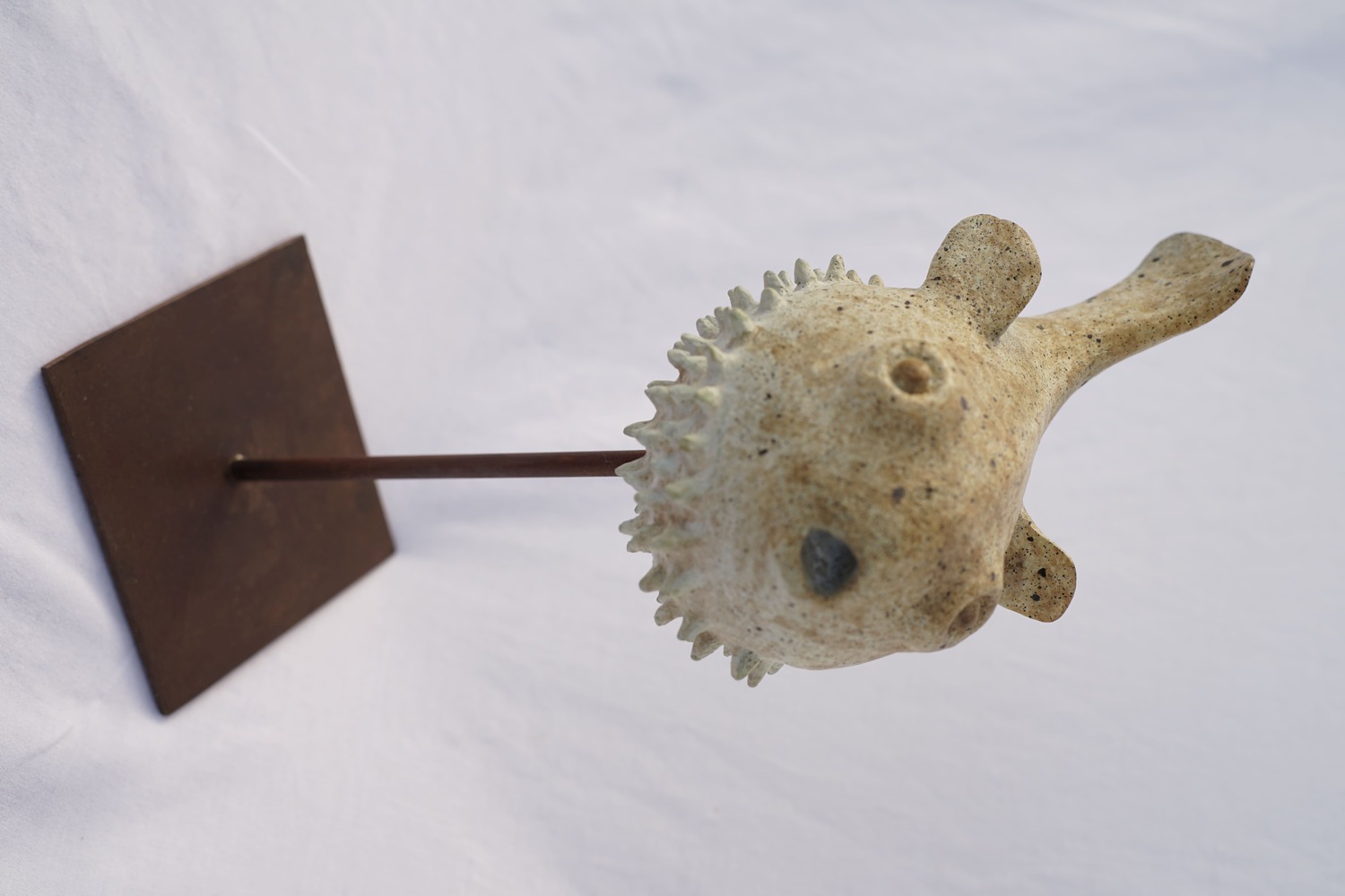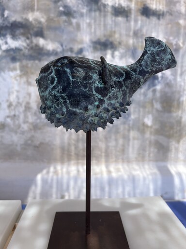 Bronze con peana de hierro Pez 13,5 x 15 x 5 cm Base 9 x 9 cm Altura 24 cm
