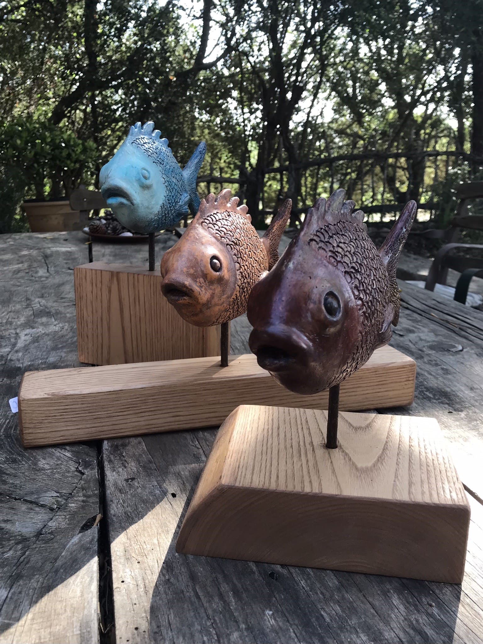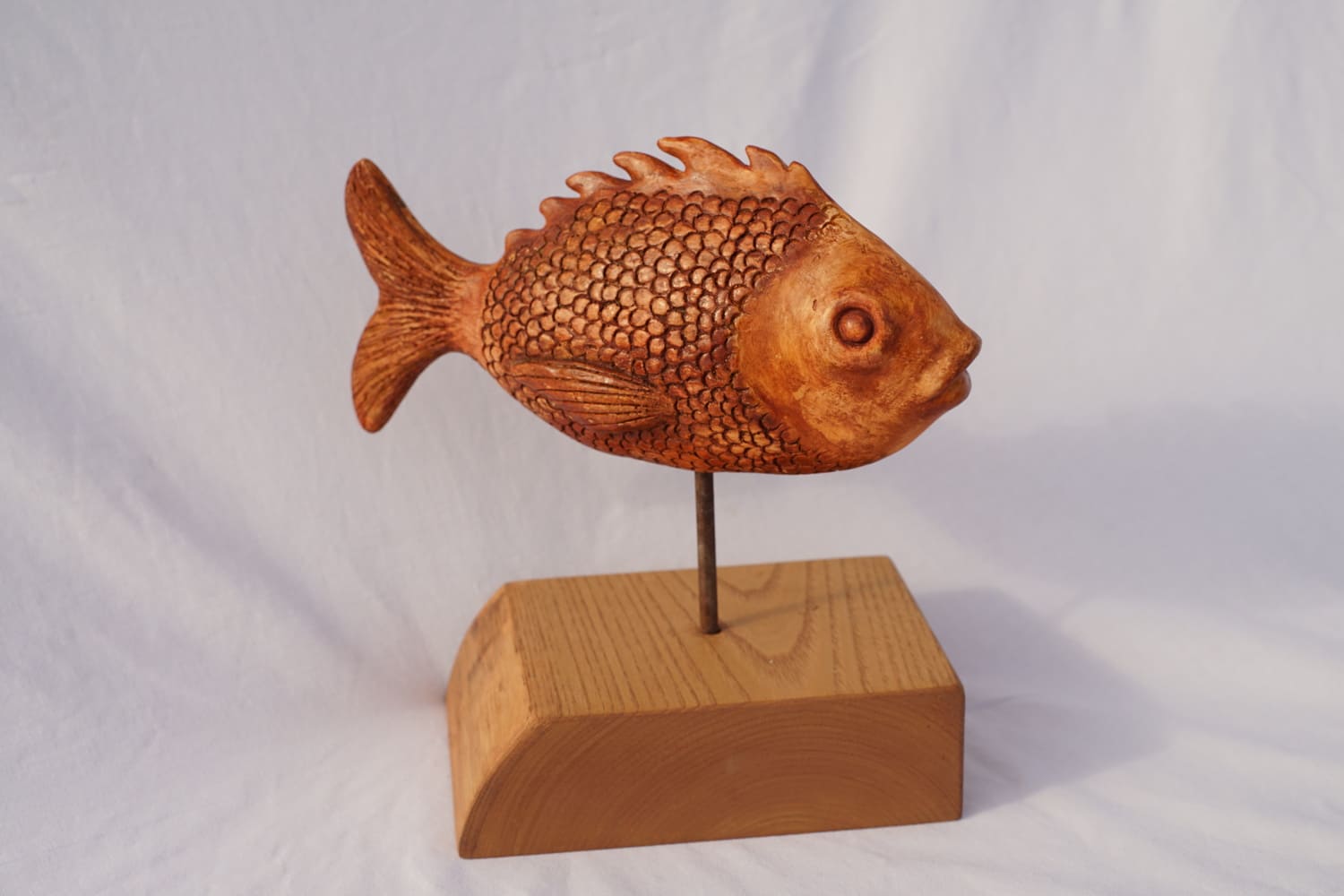 Resina y pintura acrílica con peana de madera o piedra 25 x 12 x 6 cm